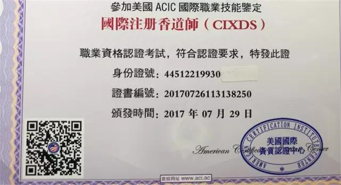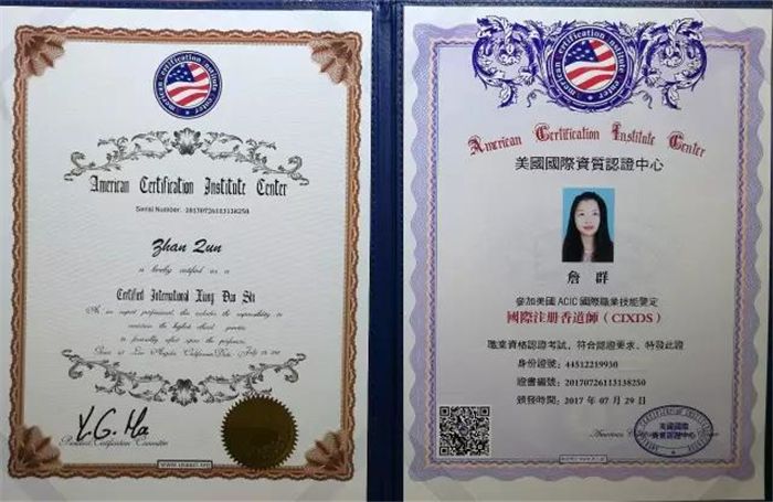 学员经过5天全天时间的学习,考试,合格后,才能办理美国ACIC《国际注册香道师》专业能力证书,网上可查询。